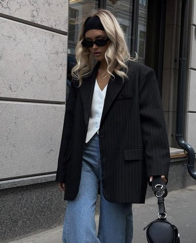 - Классический блейзер. Модель от Pinko подчёркивает фигуру и добавляет элегантности. Можно носить с джинсами или юбкой — всегда выглядит стильно.