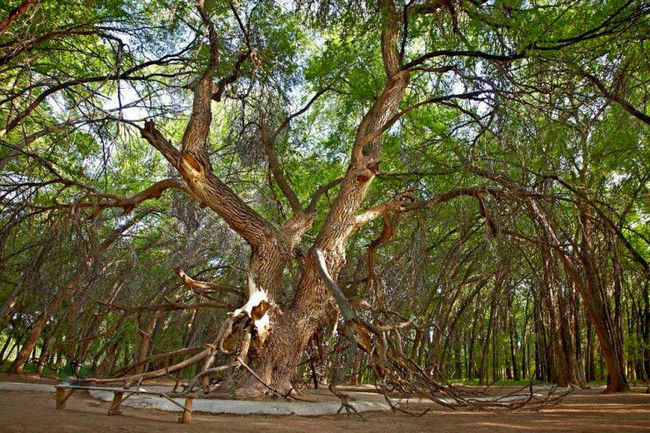 Немного дальше километров 20 находится древняя роща. И здесь растет Аулие ағаш (Священое дерево), его подтвержденный возраст 700 лет. Аулие ағаш – это дерево карагач (вяз), его ствол в обхвате составляет 6,5 метра и его могут обнять 6 взрослых человек. Средний возраст вяза (карагача) в природе от 80 до 120 лет, некоторые экземпляры доживают до 400 лет. Но как этому дереву удалось прожить столько лет и оставаться живым? Это дерево родилось во времена Золотой орды! Под ее кроной останавливались отдохнуть купцы, ведущие караваны по Великому шелковому пути.