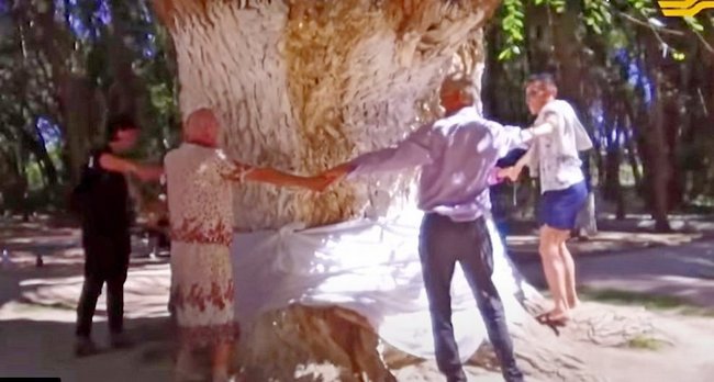 Туристы и паломники, накинув белый платок, уже много лет приходят к священному дереву, загадывают желание, просят исцеления. И соседние молодые деревья вопреки законам природы растут, тянясь своими ветками не к солнцу, а к этому дереву.