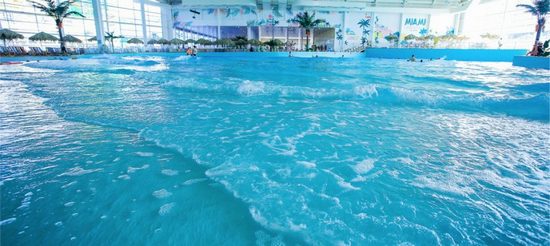 В аквапарке есть детские горки с водопадом (в детской зоне) и три плавательных бассейна: