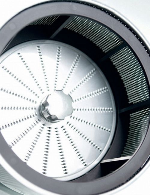 Центробежная соковыжималка использует центробежную силу для отжимания сока. Измельченные продукты закладывают в барабан, а сок под действием ускорения выдавливается через отверстия и стекает в емкость. Отработанная мякоть остается внутри. Это самые распространенные и популярные соковыжималки сегодня.