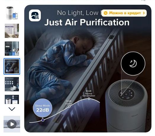 Эффективно удаляет пыль, аллергены, дым и мелкие частицы PM2.5. Оснащён HEPA-фильтром и угольным фильтром от запахов. Хорошо работает в кухне вместо вытяжки, эффективно удаляет неприятные запахи. Имеет умное управление через приложение.