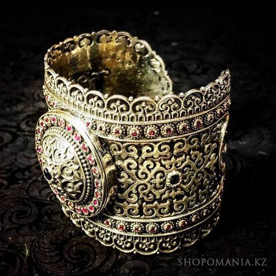 ![Казахские украшения]() Блезик (браслет), стиль зап. региона, серебро 925 пробы, вставки халседон, золото 24 карат.