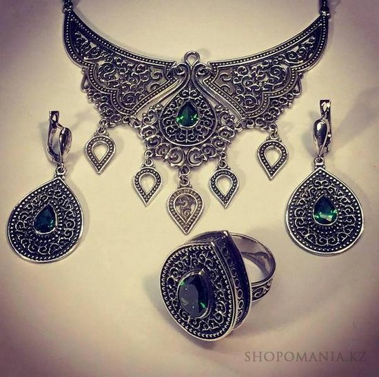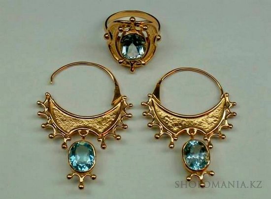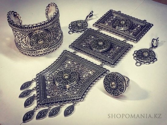 ![Казахские национальные украшения]() Роскошный подарочный комплект: парный топсалы бес блезик, сырга, алка, серебро 925 пробы.