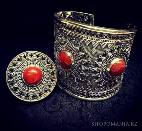 ![Казахские национальные украшения]() Подарочный комплект НЕВЕСТКИ, серебро 925 пробы, вставки коралл.