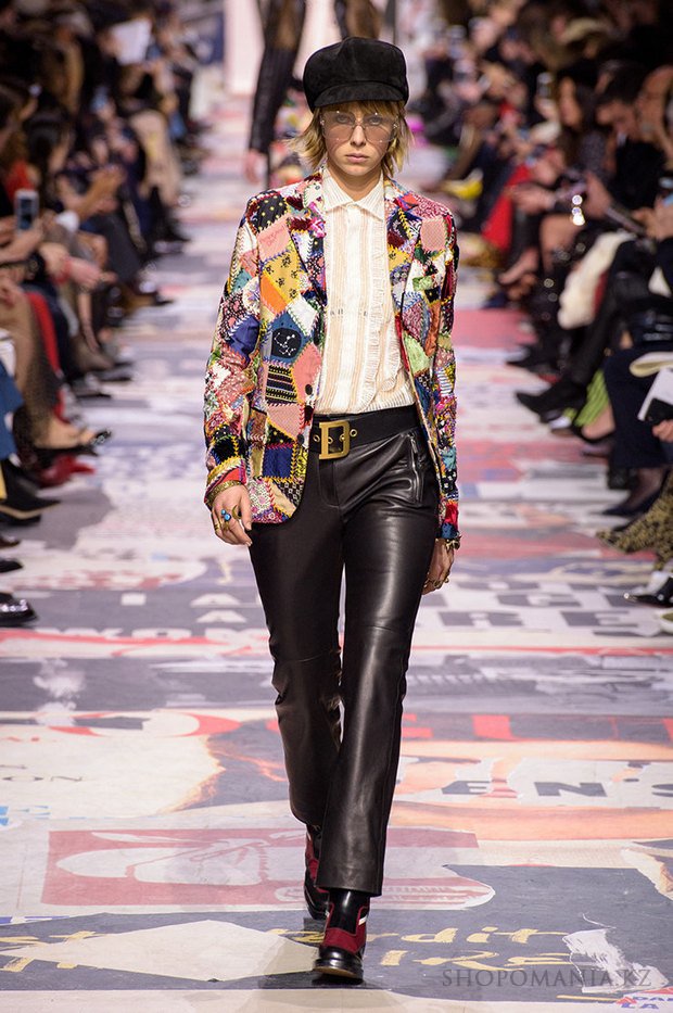 Брюки в стиле пэчворк от Dior. Модель Бэлла Хадид