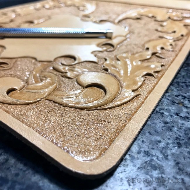 Александр Полежаев владеет многими техниками обработки кожи, но «изюминка» его работ – это ручная гравировка. Как и холодное тиснение, гравировка по коже – это очень сложная операция, требующая от мастера и мастерства, и опыта. С давних времен гравировку по коже использовали для украшения шкатулок, переплетов книг, футляров, сумок и других кожаных изделий. Особенно ценились изделия казахских, прибалтийских и британских мастеров.