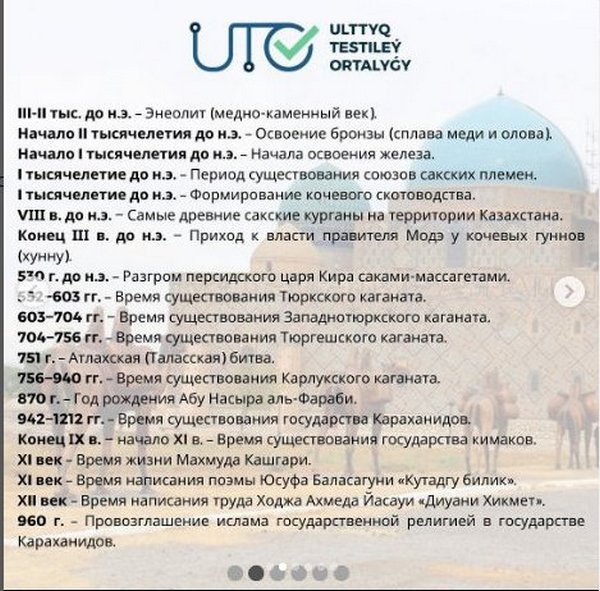 Национальный центр тестирования опубликовал в своем аккаунте в Инстаграм «Список исторических дат на ЕНТ по истории Казахстана».