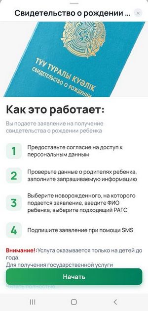 Регистрация рождения ребенка онлайн через портал egov.kz (портал Электронного правительство РК)