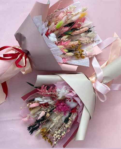 6. Букеты из сухоцветов. Эти букеты не вянут, не нужно менять воду и подрезать. Круглый год украшают дом. Сейчас букеты из сухоцветов можно встретить во многих дизайнах интерьеров. Это красиво и стильно. Такой букет можно купить заранее и он не завянет.