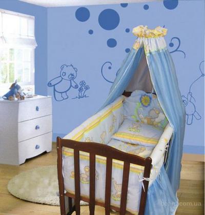 - «Бортики в кроватку» или детские постельные принадлежности (комплект: одеяло, подушка, пододеяльник, простыня, наволочка).