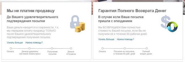 Уверенность в возврате денег в случае не получения товара из Китая или если не соответствует описанию, и т.п. – в этом китайском интернет-магазине тоже обязательна. Если в течение 60 дней вы не получили товар и не подтвердили свой отказ от товара – делается 100% возврат денег. Безопасность проведения платежей.