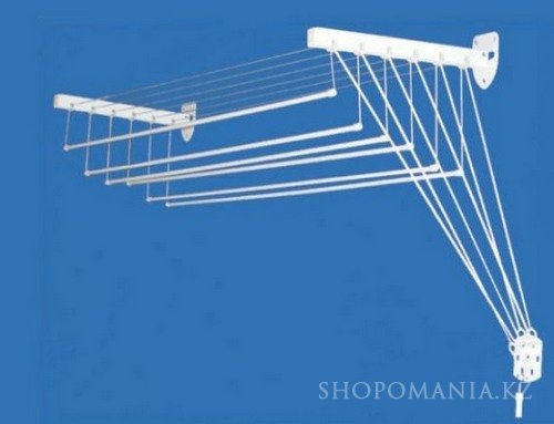 Потолочная сушилка для белья, как и следует из названия, крепится на потолке. Алюминиевая или стальная конструкция чрезвычайно удобна: стержни, на которых сушится белье, находятся под самым потолком, не причиняя неудобств. Когда необходимо развесить белье, вся конструкция легко опускается, а затем вновь поднимается вверх. Есть также модели с конструкцией «лиана», когда можно регулировать высоту каждого из прутьев.