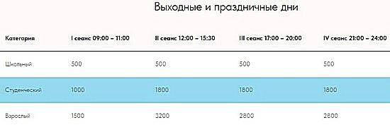 - В выходные дни цены на 500 - 1 000 тнг. дороже.