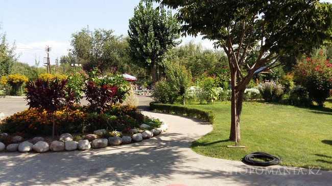 Затем справа увидите поворот направо с основной трассы и дорожный указатель «Поселок Отеген Батыра». Завернув направо и немного проехав, увидите здание РОВД, от РОВД дорога повернет налево и там справой стороны увидите заборы – это ограда зоны отдыха, а там и неподалеку и саму вывеску «Горячие источники». От главной трассы до базы отдыха – ехать всего примерно 2 км. Кстати, горячие источники ГРЭС (Алматы) находятся всего 1-2 км, не доезжая Развлекательного комплекса «Дос».